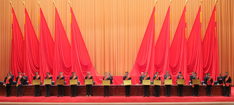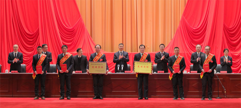 集团公司向导向受表扬的“揭榜攻坚”先进团队代表,年度事情、清静生产、科技立异、综治信访的先进整体和先进小我私家代表颁奖